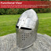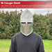 One of the two most characteristic pieces of head protection during the 14th and early 15th century along with the infantry kettle hat, the bascinet was a fully visored helmet that provided more mobility and freedom of movement than the earlier Great Helm while not giving anything away in terms of protection. Hand-forged from high quality 18 gauge low carbon mild steel, this beautiful re-creation consists of a single rounded skull plate riveted to front and rear gorget plates to cover the neck area, each rivet is made from genuine brass polished to a mirror finish. The visor pivots off of removable pin hinges on both sides and features 28 breathing holes for ventilation along with wide eye slits to ensure high visibility by the wearer. A decorative cross plate adorns the face of the helmet. The skull piece features a rear conical design that was very useful for deflecting sword blows as well as arrows. A fully adjustable interior lining is made from high quality 100 percent genuine leather and ensures that the helmet has a comfortable fit.