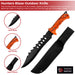 Each hunting season we don our orange and head out into the woods. The Hunters Blaze Outdoor Knife is easily visible to other hunters when you're out skinning a deer or blazing a trail so you can find the way out of the deer woods. The softened ABS handle is blaze orange with a woodland camo design so it will match your hat and vest while having a nice comfortably firm grip. A full tang stainless steel blade is weighted just right with cut outs along the center. Jagged tips are along the spine of the blade for a fearsome look and added balance. At the end of the handle a skull basher/ glass breaker holds cording to wrap around your wrist or tie to your pack. Also included is a durable nylon sheath with belt loop to keep it by your side at all times. Get out there and fill up those tags this season - don't forget your Hunters Blaze Outdoor Knife!
