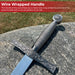 In the medieval weapons catalog, the most famous sword of European history, Excalibur, was the personal battle sword of King Arthur. The sword was given to him by the Lady of the Lake (contrary to popular belief, it is not the sword pulled from the stone). With ornate imagery on the guard and the scabbard, this medieval sword replica is perfect for collectors and medieval enthusiasts, the guard features vivid imagery of two dragons bracketing the engraving of Arthur's Round Table. The scabbard has intricate scroll work engravings on the chafe and locket along with further images of the Round Table. Slightly sharpened with a sharp point, the blade is constructed from 440 stainless steel which holds a better and more long lasting edge when sharpened and the ridge runs along its length. Providing a solid grip, the handle of the sword features a metal wire wrap while the pommel of the sword is solid with a cut out pattern on an orb and an antique finish for an attractive and classic look.