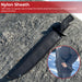 Sharpened to a super razors edge, the Survivors Bowie is built to keep you alive in the most dire of circumstances. Your best chances at survival are mostly linear to your knife and that grey matter between your ears. Choose the Survivors Bowie Sawback knife that can be used as a knife, hatchet, saw, spear, and much more. The massive handle provides ample grip with the fine diamond texturing on the large rubber body. Keep your hands safely away from the razor sharp blade utilizing the large S-Shaped hand guard made of black anodize 440 stainless steel. The massive barracuda shape blade also features an all-black anodize finish with serration and tactical cutout holes. Included FREE with this knife is a thick nylon sheath with belt loop. The sheath features double fold stitching and steel rivets holding it together. Stiff nylon is a great way to keep the blade attached to your belt or pack with peace of mind.